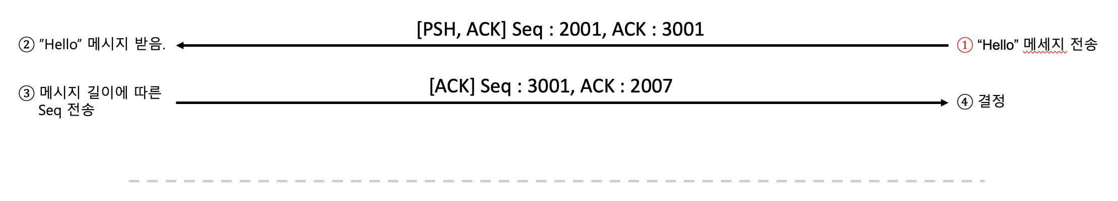 데이터를 전송하는 과정을 나타냄 H e l l o \n 로 인해 seq 에 6을 더하여 ACK를 전달함.
