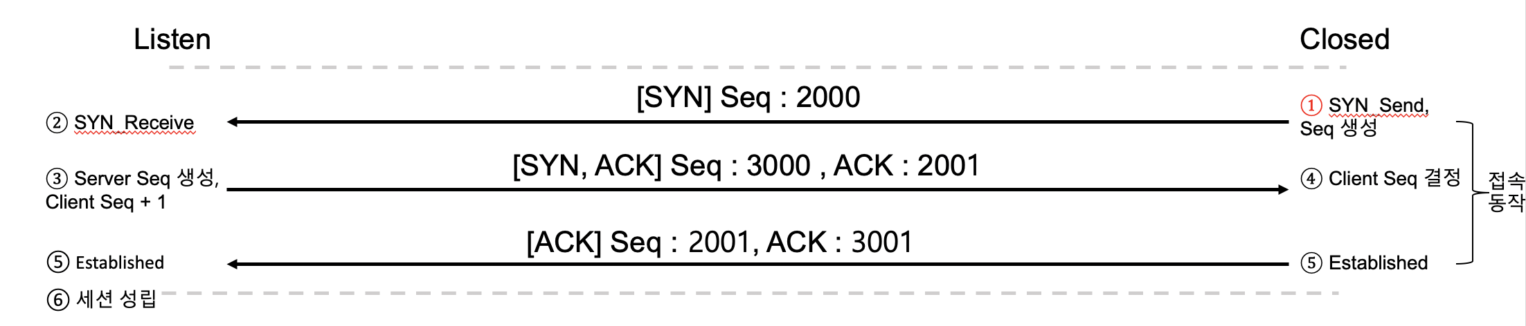 3 Way HandShake 세션 연결을 수립하고 신뢰성을 보장함.